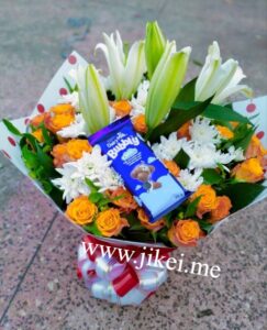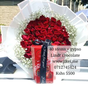 Bouquet of Bliss: 40 Stems of Flowers with Lindt Chocolate