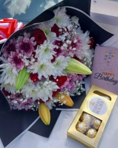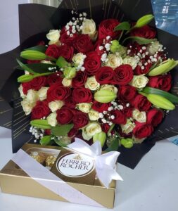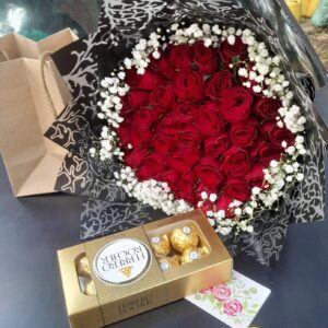 80 stems roses, Babies Breath with Ferrero 8pcs
