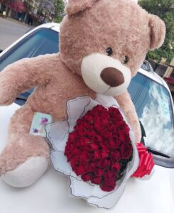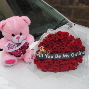 Bloom and Bear Hug: 40 Stems of Roses with a 30cm Teddy