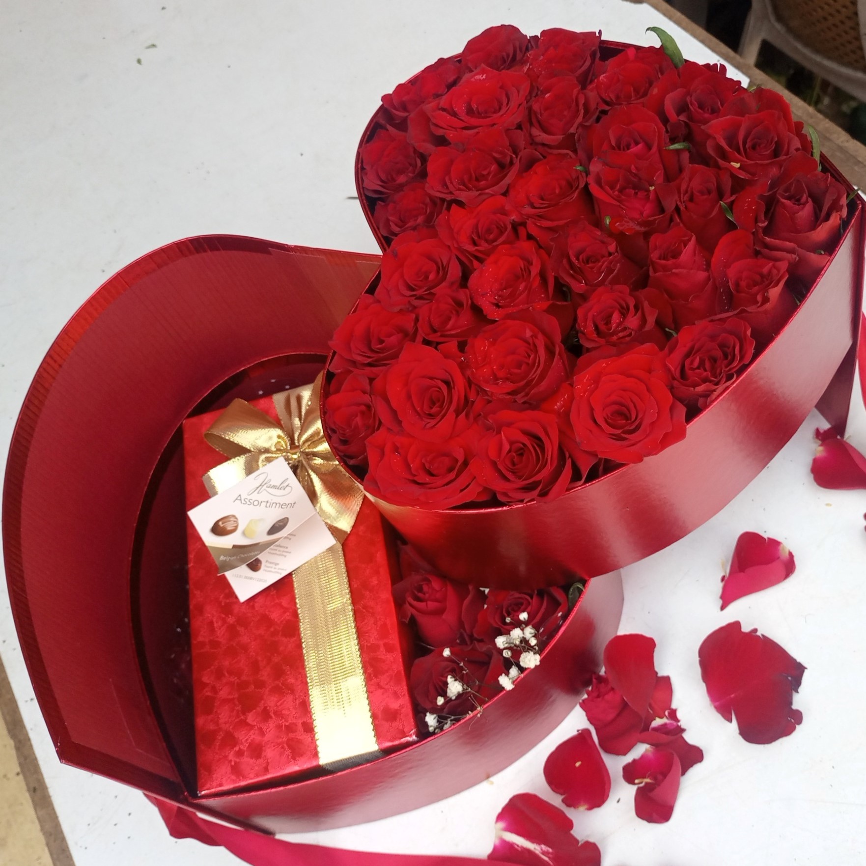 Double heart hat box with and executive chocolate