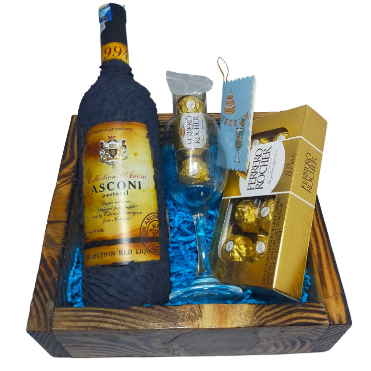 Asconi wine, Wine glass and 11 pcs of Ferrero Rocher