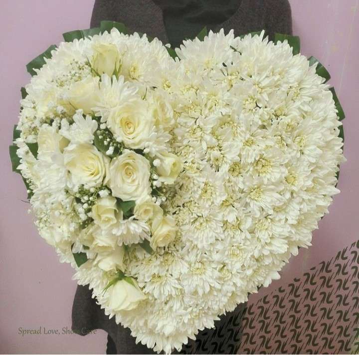 Heart shaped pillow made from chrysanthemums and some few roses. (Mainly Placed on the grave yard)