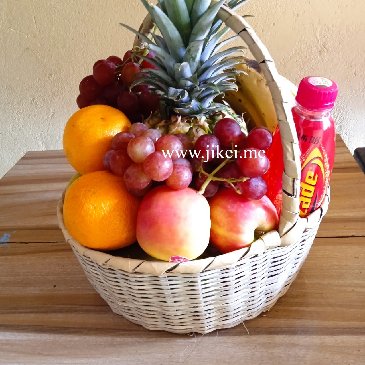 Have yourself Fruit in a Fruit basket and some drinks attached with a message card delivered to your preferred destination.