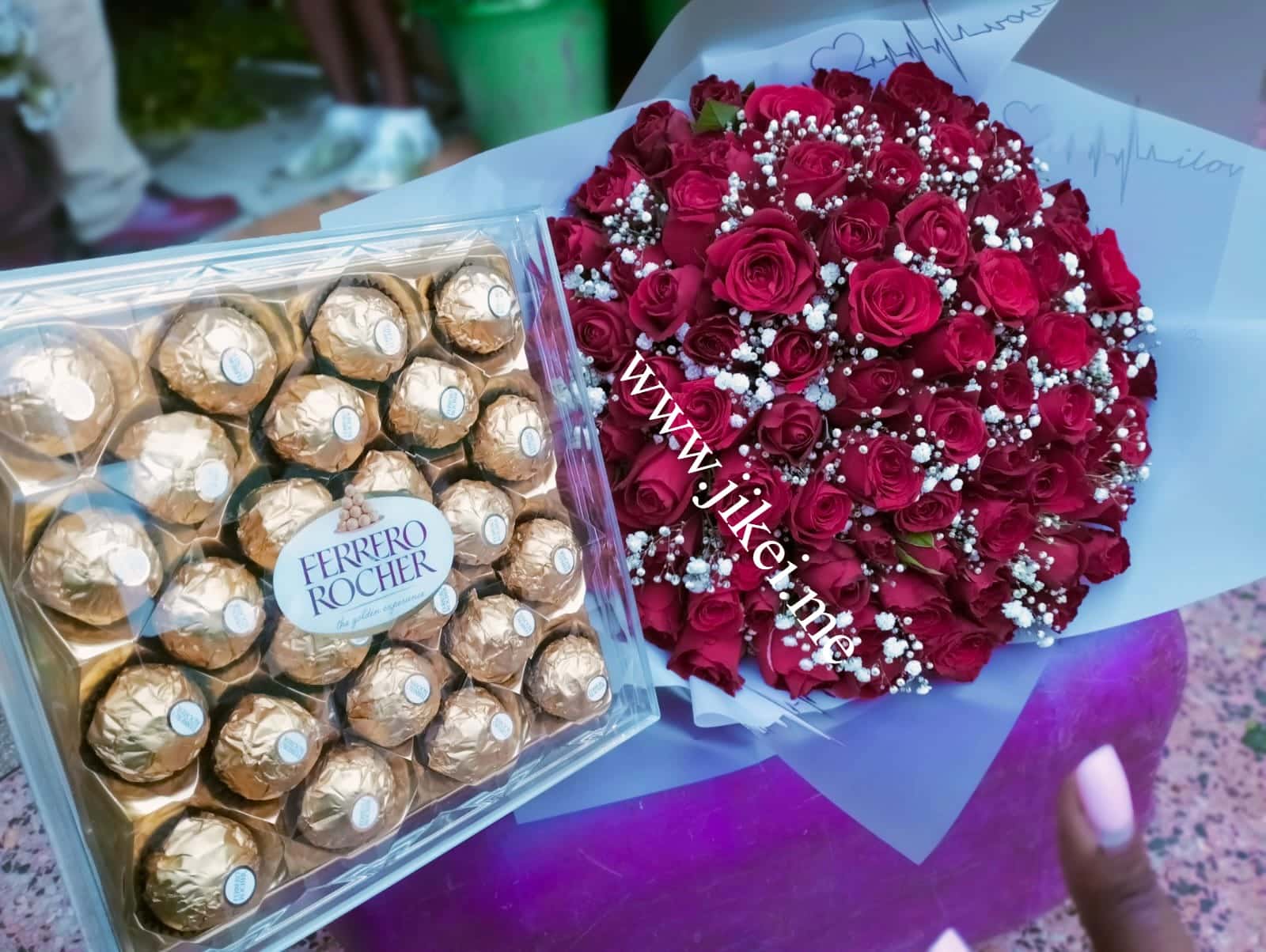 Roses Bouquet and 24pcs Ferrero Rocher: